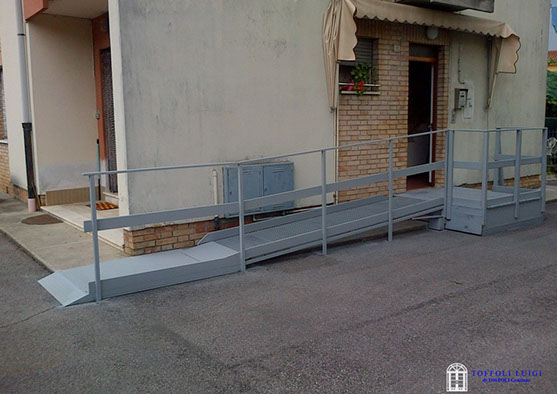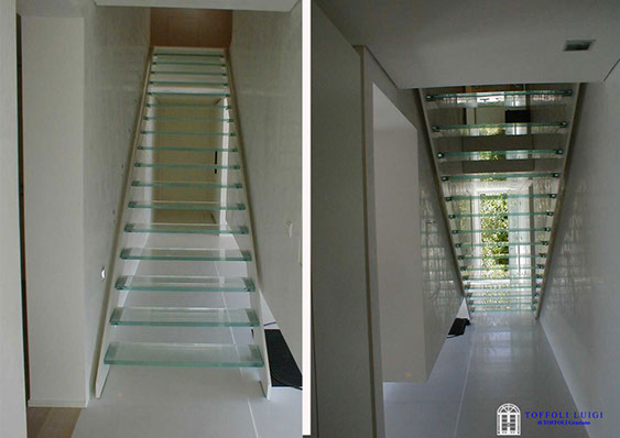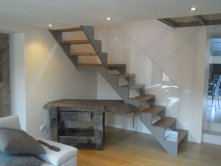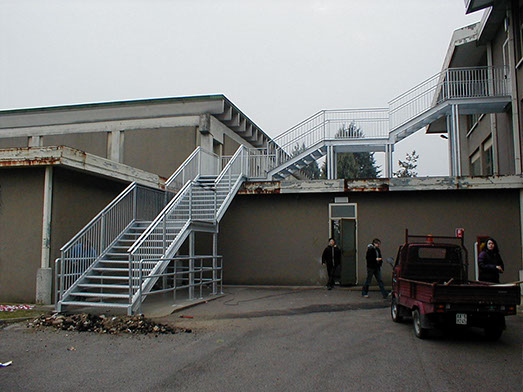 Scale a sbalzo, struttura in ferro e gradini in legno, struttura in ferro e gradini in vetro, struttura e gradini in legno, scale d'emergenza, rivestimento scale in legno e rampe per disabili.