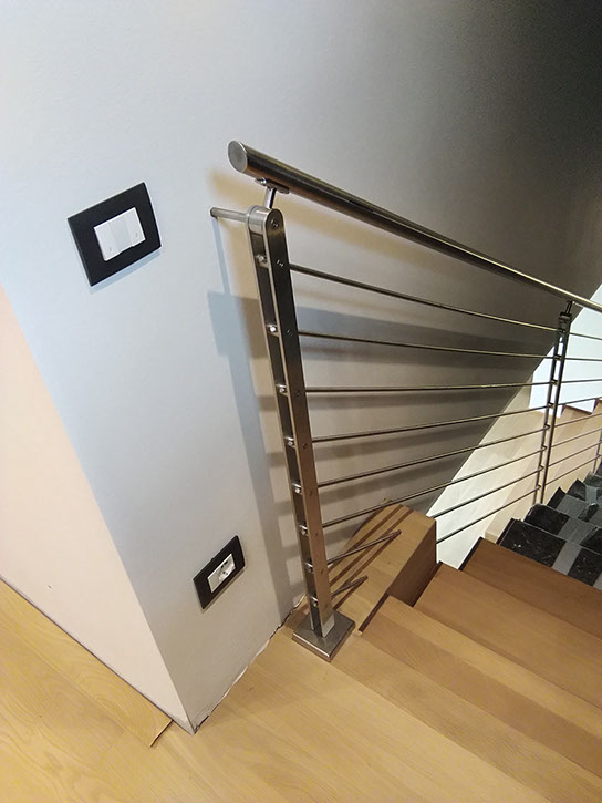 Corrimani in acciaio con luce led, oppure in vetro.