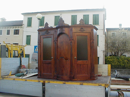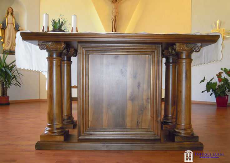 La nostra azienda produce arredi sacri, banchi in legno massiccio in diverse essenze legnose e modelli completamente personalizzabili, confessionali in legno insonorizzati adatti ad ogni stile, cantorie e mobili per arredi di sacrestie, altari, sedie, accessori d'arredo per chiese, restauro e trattamenti antitarlo per qualunque arredo in legno.