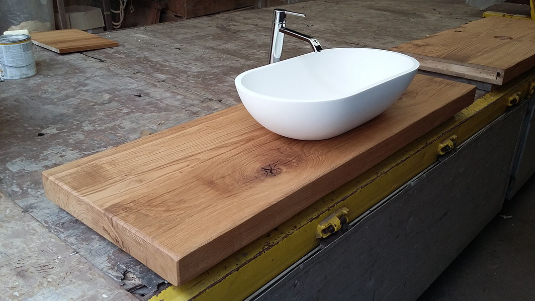 Realizziamo piani in legno con lavabo esterno, cassettoni estraibili laccati oppure in legno, unendo anche i diversi materiali e colori per ottenere pezzi unici.