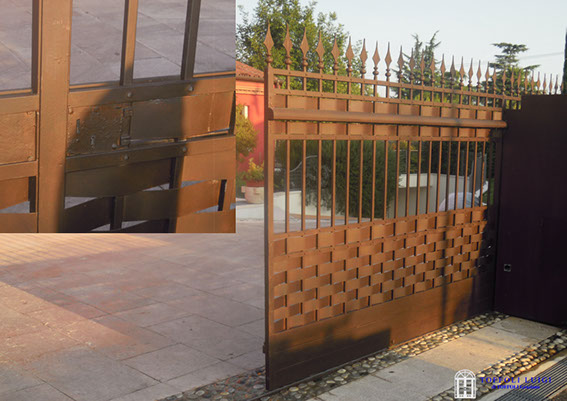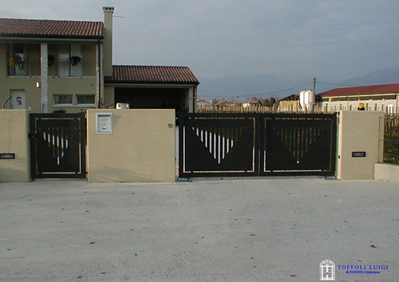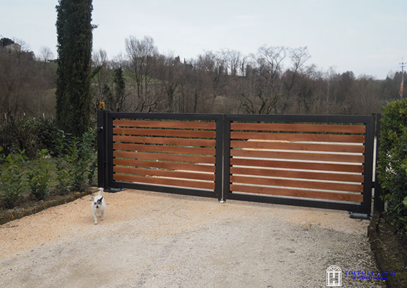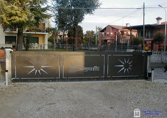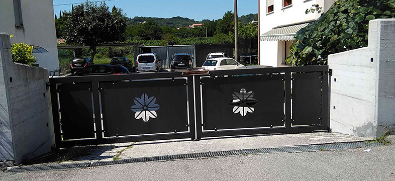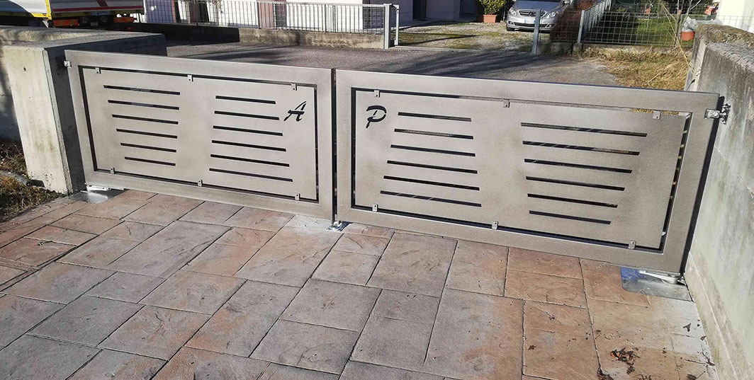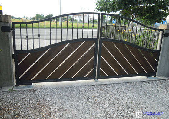 I cancelli possono essere in ferro battuto, ferro con lamiera tagliata a laser con disegno personalizzato, tubolare con doghe in legno, legno di diverse essenze.