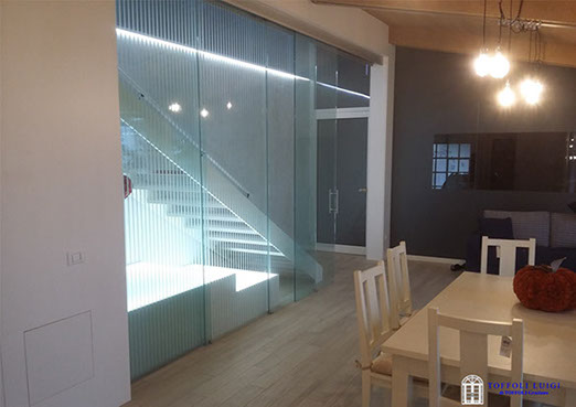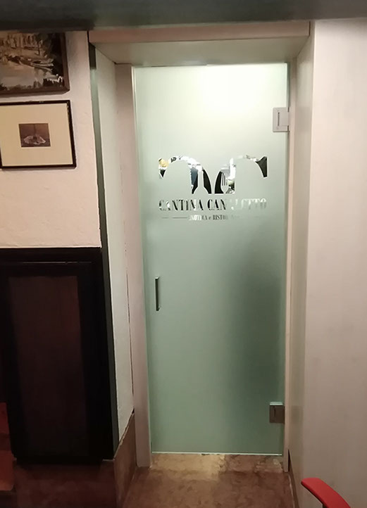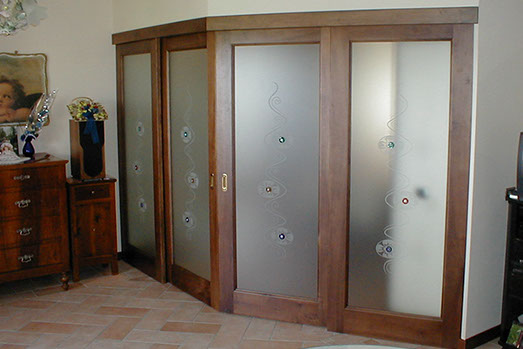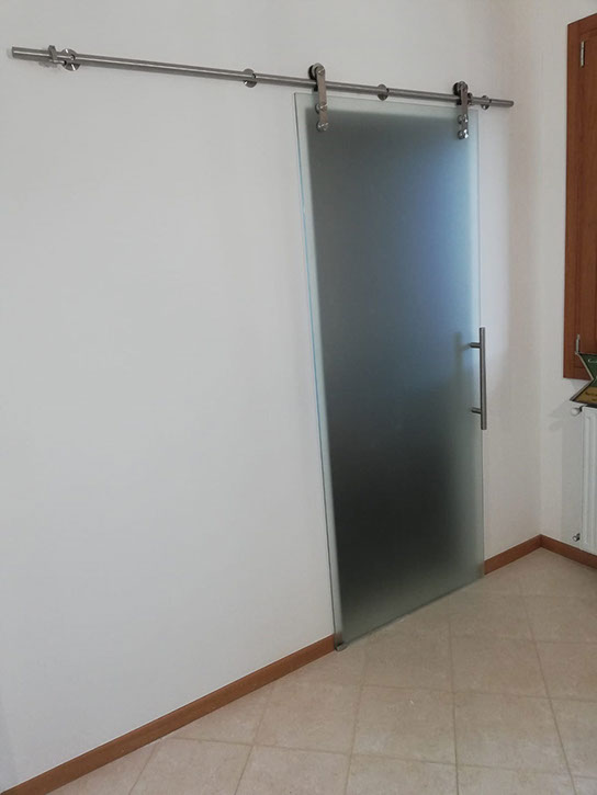 Le porte in vetro possono essere sabbiate con personalizzazione.