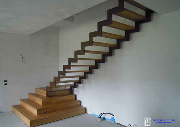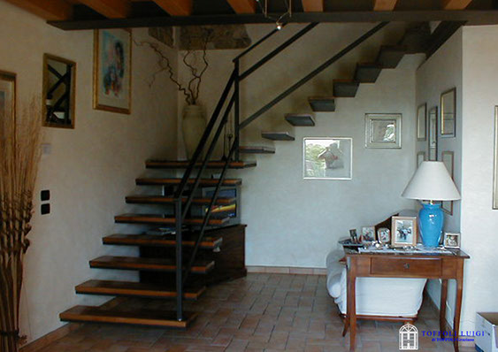 Scale a sbalzo, struttura in ferro e gradini in legno, struttura in ferro e gradini in vetro, struttura e gradini in legno, scale d'emergenza, rivestimento scale in legno e rampe per disabili.