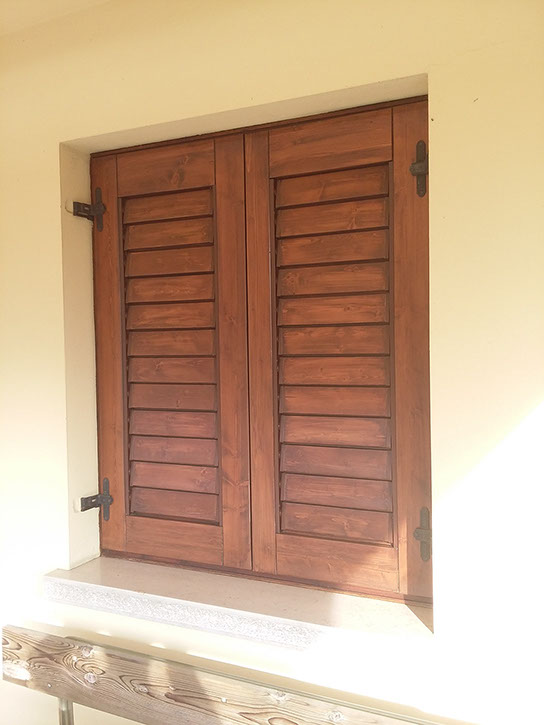 Produciamo inoltre scuri in legno (lamellare o multistrato di okumè) oppure in alluminio con diversi profili, che garantiranno la forma da voi richiesta; anche l'alluminio potrà avere la venatura del legno.